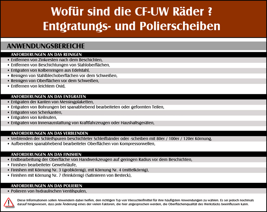 Surface Group Entgratungs- und Polierscheiben kommen mit schwierigen Aufgaben beim Verblenden und Finishen bestens zurecht. Sie liefern rasche und einheitliche Ergebnisse und werden gerne eingesetzt, wo fruher konventionelle Schleifkörper wie gummigebundene Schleifscheiben, Schruppscheiben und Vliesfacherscheiben verwendet wurden.