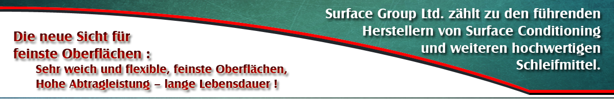 Surface Group bietet ein komplettes Produktsortiment für die Bearbeitung von Metalloberflächen wie z.B. Schneiden und Entgraten, Schleifen und Oberflächenvorbereitung - bis hin zu Top-Qualitätsprodukten und - Innovationen zum Finishen, Mattieren und Satinieren. |